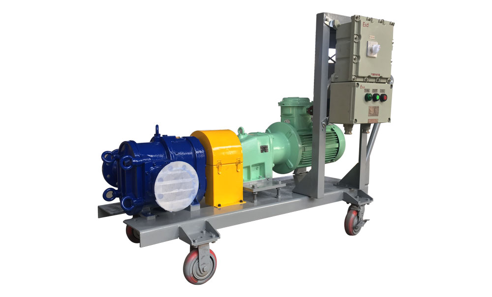 羅德手推式移動泵車以橡膠包覆凸輪轉子泵為核心,電動機為動力來源,可配備控制箱,電纜盤,快速防爆插頭等附件,應對無法安裝靜止式泵以及需要靈活應用的工位。